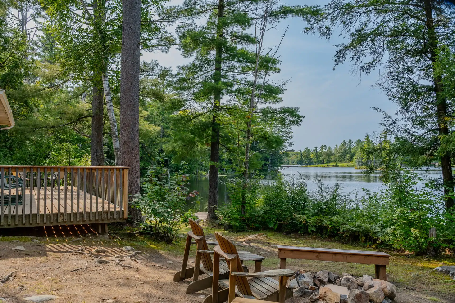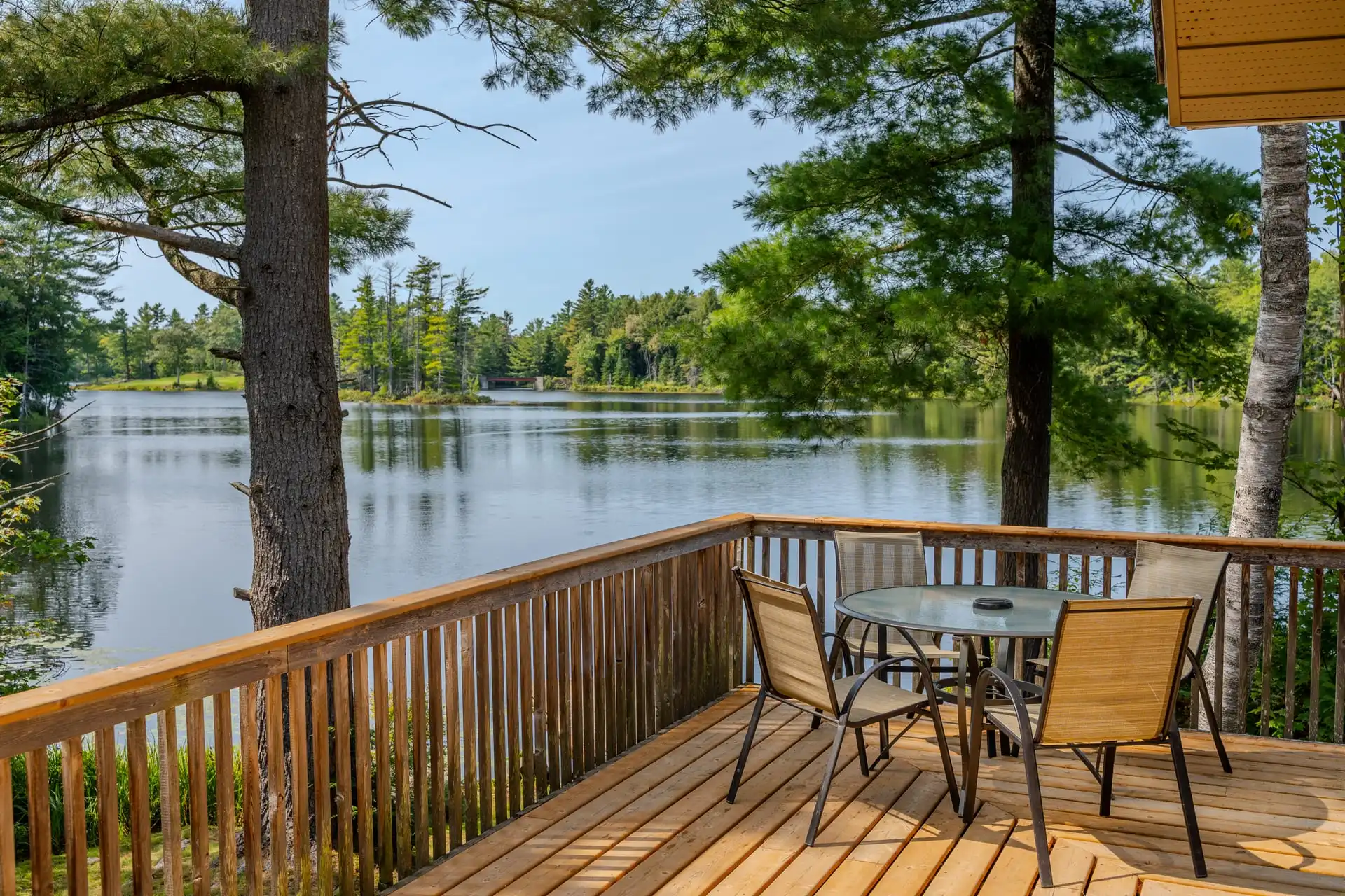 Our Play and Stay package includes golf with cart, dinner, overnight accommodations, breakfast, and a second round of golf. This quiet lakeside cottage overlooking the 7th green features stunning sunset views, comfortable sleeping for 2–4, and a wrap-around deck with firepit—perfect for a relaxed golf getaway.