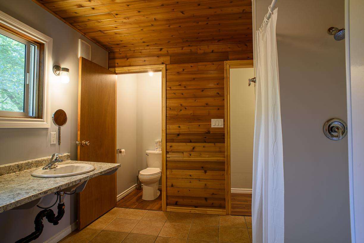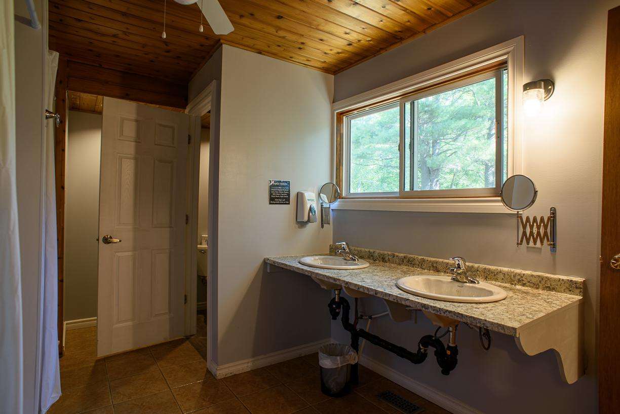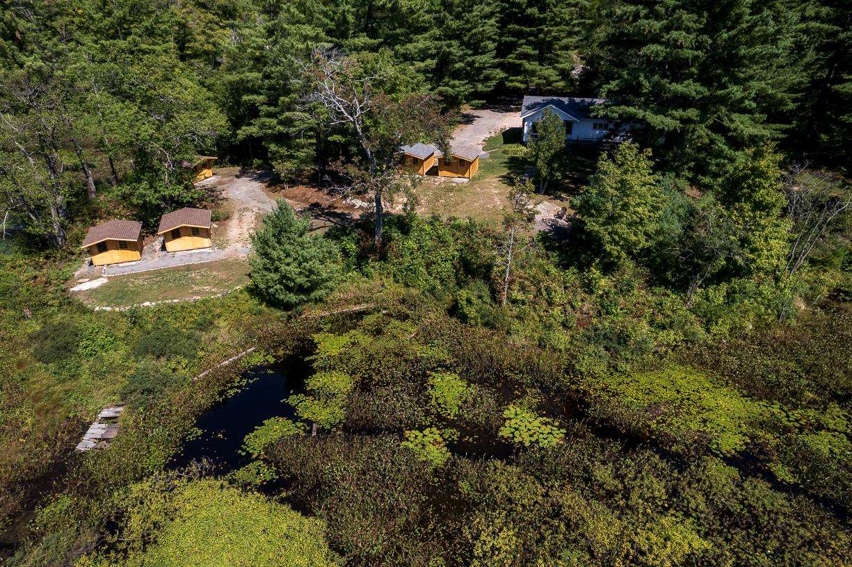 • Waterfront Sleeping Cabins: Five detached cabins, each with two twin beds, just steps from the water.