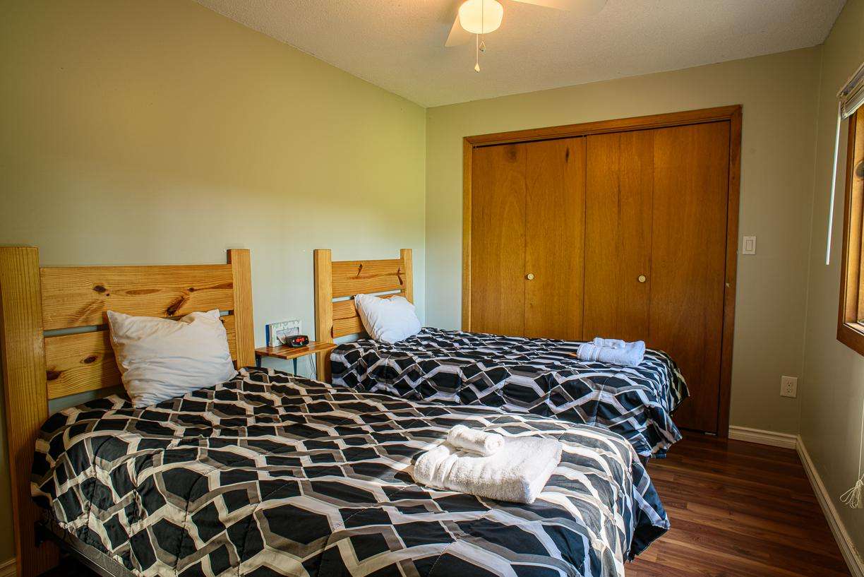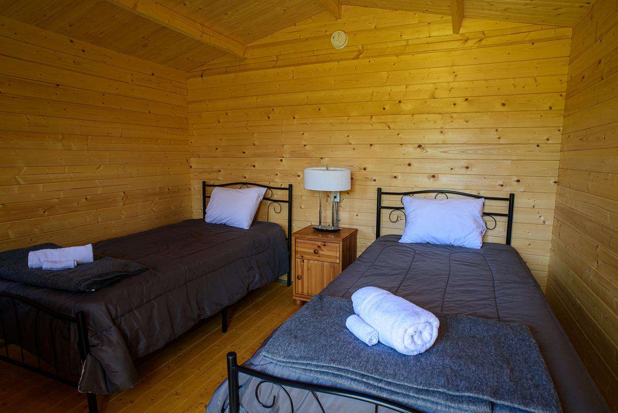 • Main Cabin: Three bedrooms, each with two beds.
