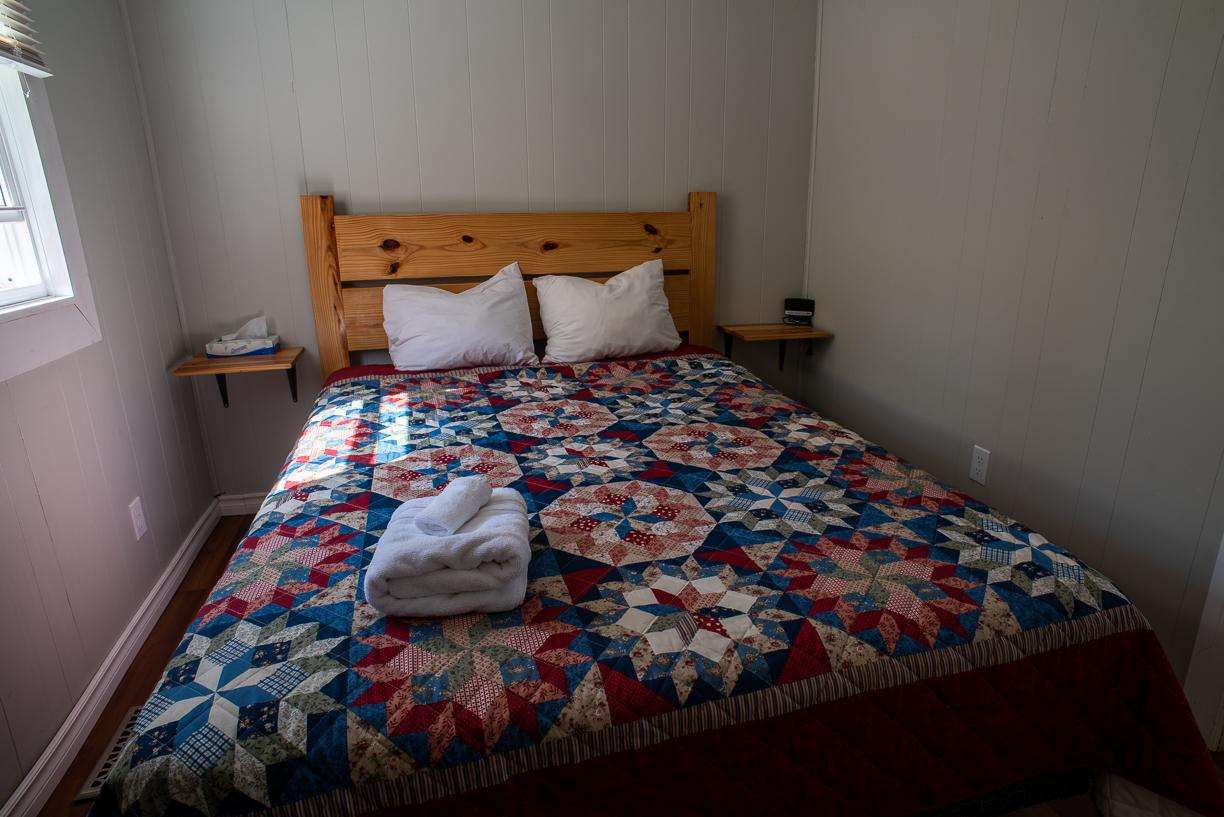 Accommodates 8 to 12 golfers. This cabin has three bedrooms with one queen bed in each. Additionally, there are five detached sleeping cabins that hold two twin beds in each.